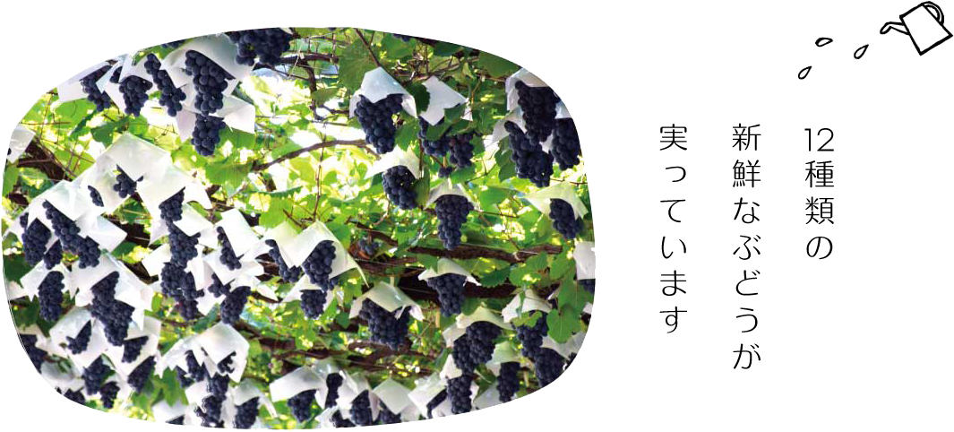| 説明 | 新鮮なぶどうの食べ放題とぶどう狩りで1,000円分のお土産をお持ち帰りいただけます。 |